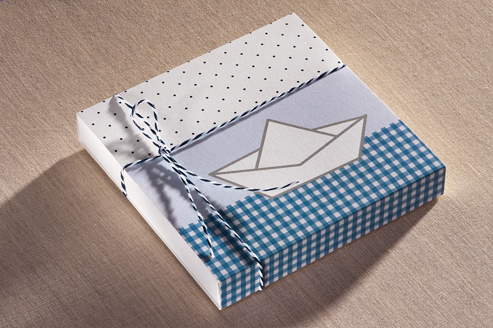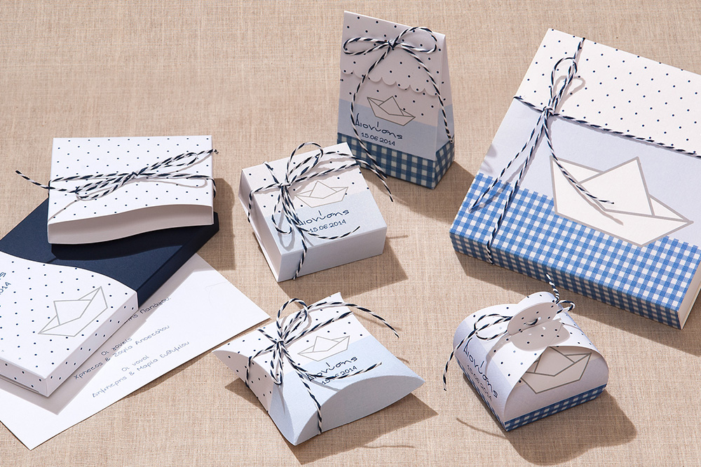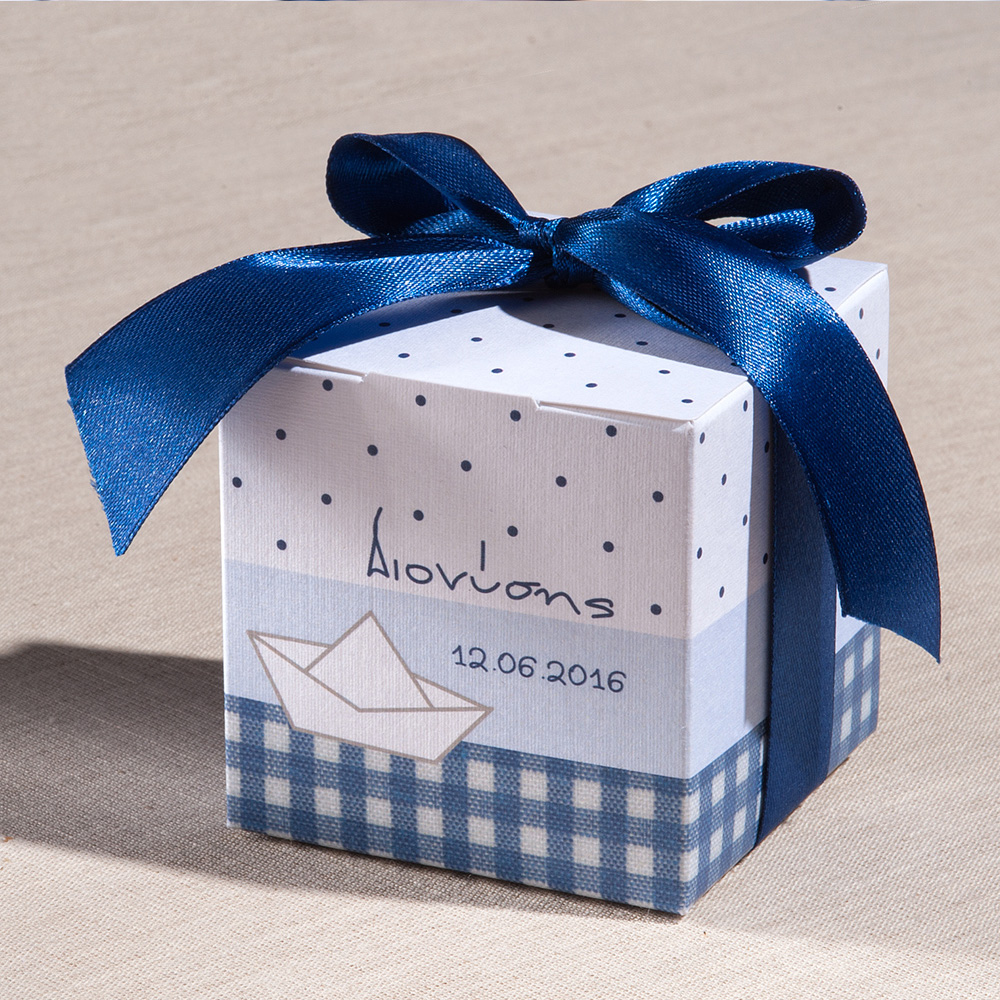 Μπομπονιέρα Βάπτισης Καράβι με Σχέδιο Πουά